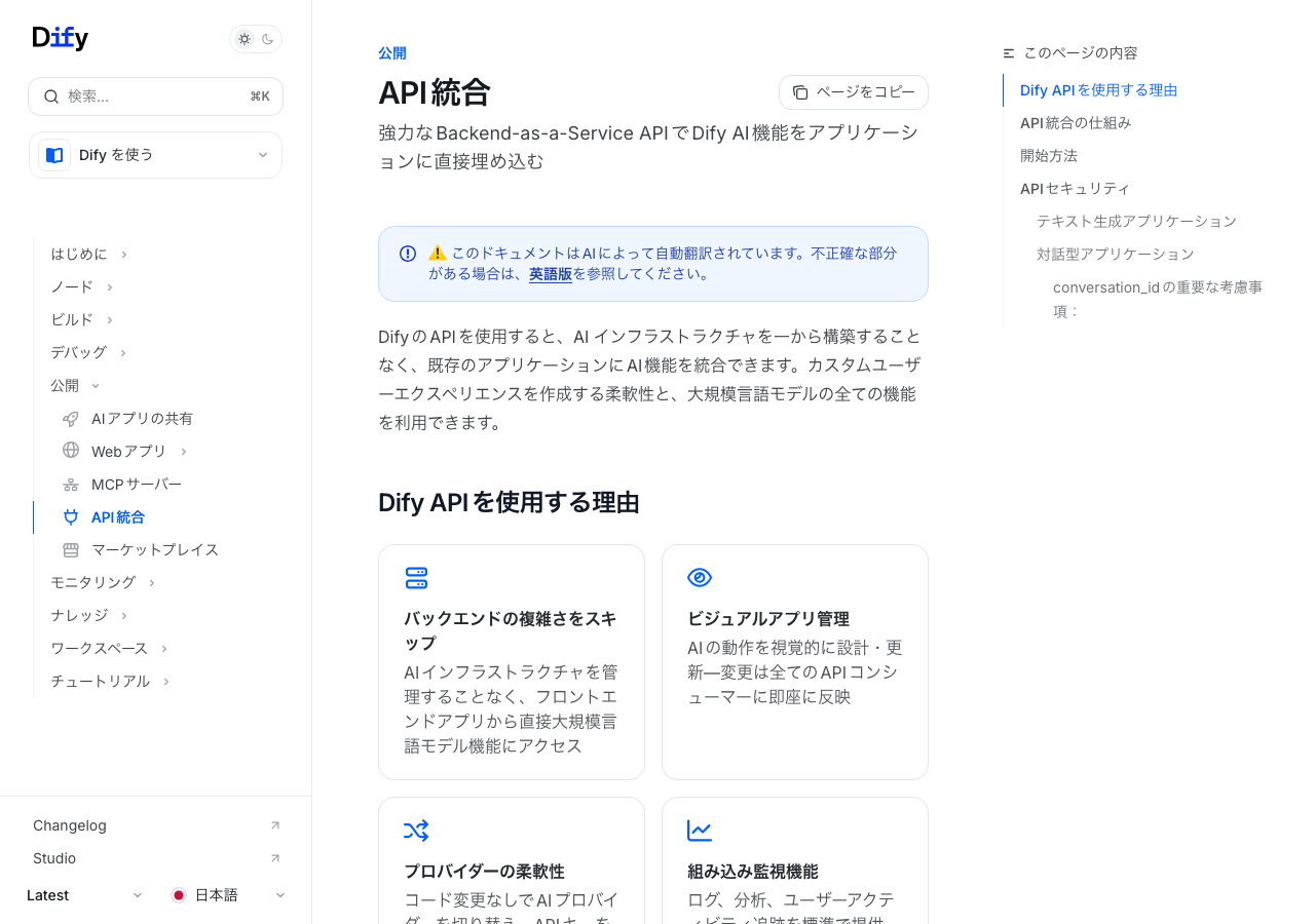 | ナレッジAPI | ナレッジベースをプログラムから操作する | /v1/datasets、/v1/documents |