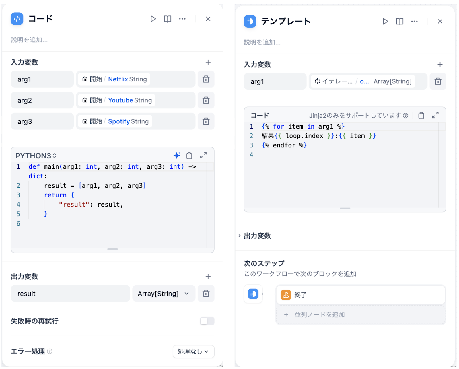 | 終了(回答) | 出力の定義 | ワークフローの出口 |