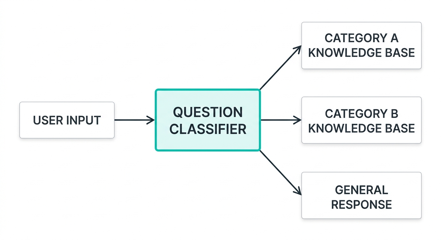 質問分類器による前段の振り分けが、RAGの精度を上げる構造ですね。