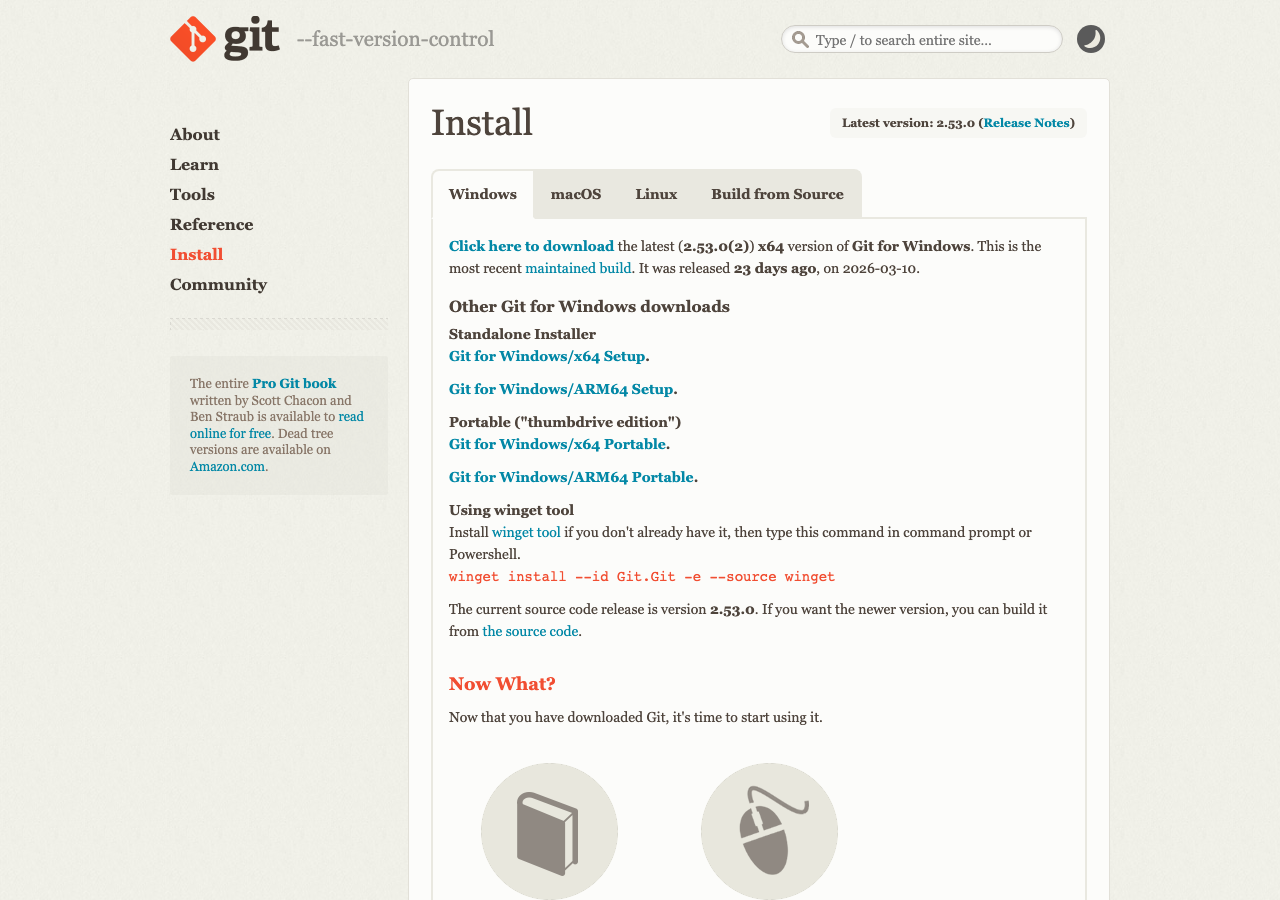 テキトー教師ハードウェアはRAM 4GB以上、インターネット接続も必須です。あと、WindowsだとGit for Windowsが必要という点が地味に重要で。
