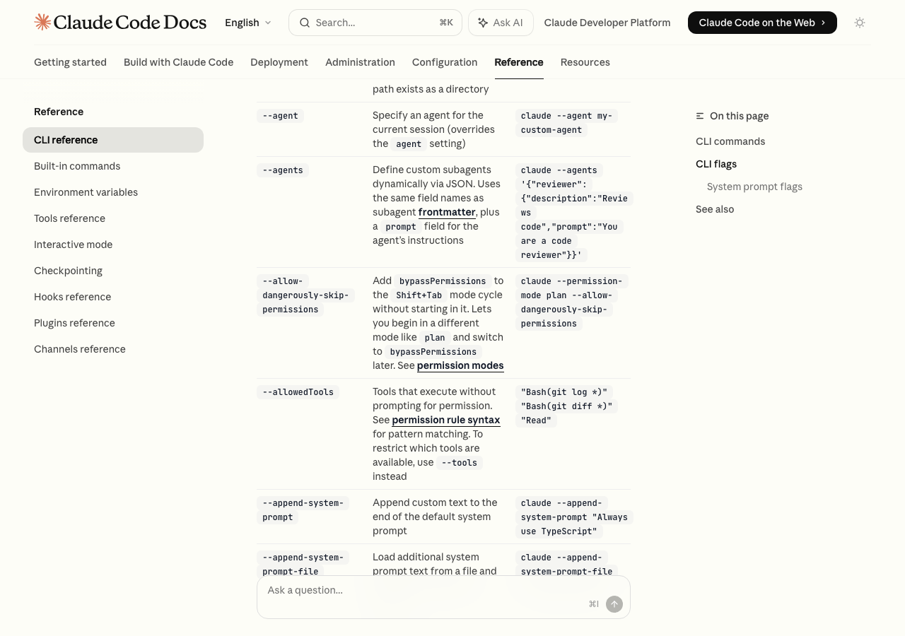 claude -p "クエリ"の-pがフラグです。公式ドキュメントを見ると、40以上のフラグが定義されています。全部覚える必要はなくて、まず日常的に使うものを押さえておけばいい。