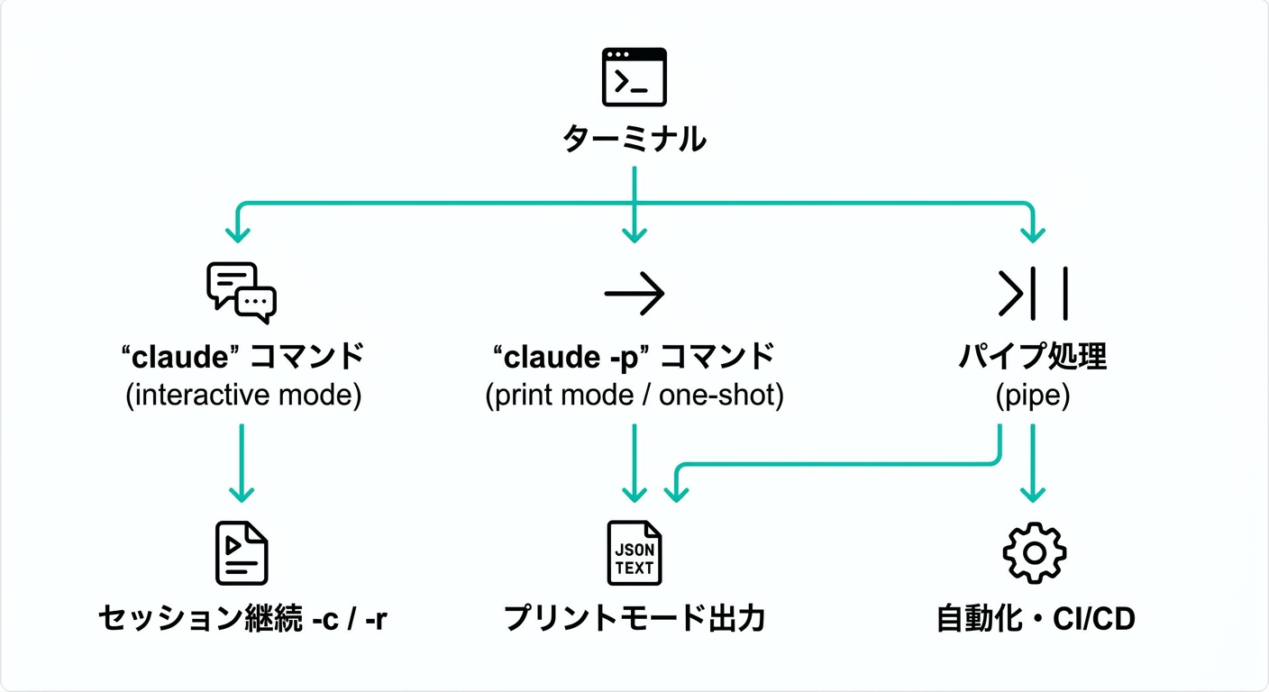 シェルスクリプトに組み込んだり、CI/CDパイプラインの中でClaude Codeを使ったりする時の基本になります。MYUUUでも自動化の文脈でよく使っています。